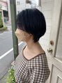 顔周りを長めに残した前下がりのまるみショート、毛量が多い方にオススメの髪型です。えりあしやサイドはフィットするように軽くしているのでオイルをつけてまとまりやツヤを出して仕上げるのがポイントです!