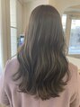 柔らかいミルクティーカラーと、くすみがかったアッシュブラウンの色味を合わせたカラー。ナチュラルなトーンやブリーチありの明るめトーンからでも、おしゃれな抜け感カラーに仕上がります。透明感があるカラーなので、肌色も明るく見せてくれます。