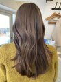 ベースカットは表面と顔周りにレイヤーを入れてロングでも重たさを感じさせないように。自然なストレート、クールになりすぎないように入れたレイヤーを活かして毛先は軽くふわっと内に入るようにしています。