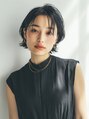 前髪を上げても良し、おろしても良し。一番何にでも応用の効く髪型です。毛先の動きある質感がお洒落な雰囲気をつくります。カラーリングは上品な暗めアッシュブラウンにする事で落ちた着いたイメージに![ショートカット/白髪染め/白髪ぼかしも人気]
