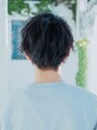 襟足はすっきりと刈り上げない長さで短くカットサイドもツーブロックでボリュームをおさえつつシルエットを決めますパーマは毛先をメインにランダムな動きがつくように外ハネ多めに巻きました。前髪も長めで毛先にパーマがあるとよりおしゃれスタイルに!