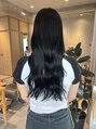 艶のある黒髪ロングにゆる巻をプラスすることで、大人っぽさと柔らかさの両方を演出できます☆暗めカラーでも重たく見えず、上品で透明感のある仕上がりに。