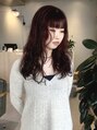 深みのあるレッドブラウンカラーで、艶っぽく柔らかい印象に仕上げた秋冬おすすめのヘア。顔まわりのカットで輪郭の周りを動きを出して、自然に小顔に見せるスタイルです。透け感のある前髪が重くなりすぎず、カラーの艶をより引き立ててくれます。