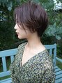 前下がりラインのセンターパートショートです。 いつものショートスタイルに飽きた方におすすめです。 前下がりのスタイルは大人っぽくクールな印象になるので、いろいろな年代の方に似合わせができるショートスタイルです。