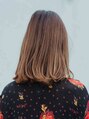 鎖骨下の長さでワンレングスのベースにカット。韓国風でも大人気の顔周りにレイヤーを入れたスタイル。カラーは一度ブリーチでベースを明るくしてから、ミルクティーのようなくすんだベージュブラウンを入れました。