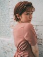 顎ラインのミニボブデザインベースにくせ毛風のゆるめニュアンスパーマをかけています。カラーリングは艶っぽくみえるようにピンク系で染めています。しっかり乾かせばまとまるボブにもなるので雰囲気に合わせて楽しみましょう♪
