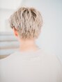 前髪は目に少しかかるくらいの長さでカット。横はかなりスッキリ目ですが後ろはあえて刈り上げないことでナチュラルな髪型に。レイヤーもたくさん入っているのでセットの仕方で束感や動きをたくさん出せます。カラーはハイトーンでさらにおしゃれに。