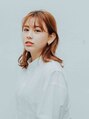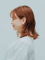 クリーミーなオレンジカラーでオシャレなカラーに☆ファッションのアクセントにもなるカラーで春夏のオシャレポイントに☆顔まわりはシースルーバングにサイドは耳にかけ肌感を出して爽やかに!