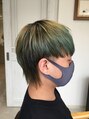 実はモデルさん男性!中性的にどちらも出来るスタイル!韓国風を受け入れやすく調整。今回はブリーチ毛を縮毛矯正 根元は強力なクセがあるので、ストレート液は 厳選致しました!ご自分でされたホームカラー毛を生かしてカット。左右耳の位置も考慮^_^