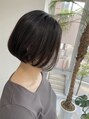 やや前下がりのラインでカットしたボブスタイル。耳にかけてもきれいなライン。前髪は作らず長めにサイドに馴染むように。分け目を変えたりかき上げてもスタイリングできます。