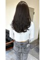 フロントからバックまでたっぷりレイヤーを入れたロングスタイル。赤みを抑えたアッシュの色味とワンカールのスタイリングで柔らかく◎Instagram→@lysm_kuro.1024