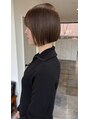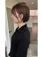 やや前下がりのミニボブ。首が長くキレイに見えるラインとすっきりタイトなシルエット。明るめなアッシュベージュ。インスタグラム@lysm_kuro.1024