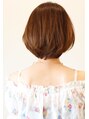 襟足すっきりとしたボブスタイルです。コロンとしたシルエットが女性らしい大人可愛いスタイルです。襟足ギリギリでカットしているスタイルなので首がスッと綺麗に見えます。毛先のほうにくにゃっとゆるめにニュアンスのパーマがかかっています。
