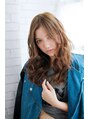 大人ロングのミックスカールスタイル。弾力のあるウェーブ感とロングバングが、かっこいい雰囲気を感じさせるヘアースタイル。