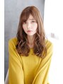 重めの前髪とAラインに広がるようなミックスカールは、大きなカール感でボリュームが出る女性に人気のスタイルです。