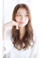 透け感のあるカラーに揺れるようなミックスカールスタイルです。顔まわりのゆるいカールが全体に柔らかさを出します。
