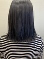 - 肩に当たるロブスタイルにカットし、ネイビーカラーを施します。