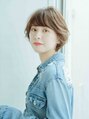 バックのレングスはあごラインよりやや短め、前上がりショートボブです。レイヤーが適度に入っているのでフォルムはひし形、小顔効果大です。カラーは透け感のあるベージュ系で軽やかにスタイリングした時に立体感が出ます。【藤沢】