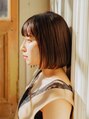 不動の人気のボブスタイル。可愛くなりすぎないよう毛先の質感は切りっぱなしな質感に!ストンと収めたいので毛量は軽めに。前髪は眉毛の位置でパツっと切り、束っぽくスタイリング出来るよう薄め取り空間をに作りました。