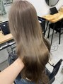 ダブルカラー/オリーブベージュ/ハイトーン/ケアブリーチ/透明感/艶カラー/大人可愛い/レイヤーカット