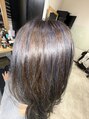 細めに入れたハイライトに、青みを効かせたカラーをオン。赤みをしっかり抑えつつ、光に当たると透けるブルー感が◎立体感と透明感が同時に出て、巻いてもストレートでもおしゃれに決まるスタイル。色落ちもきれいで長く楽しめます。