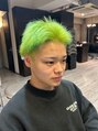 個性的ライムグリーンカラーハイトーン×アップバングショート