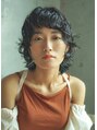 カットはウルフレイヤースタイル。パーマは外ハネとスパイラルをミックスでかけるニュアンスパーマ。クセ毛のようなクリッとした動きを出すのがポイントです。[薬院/警固][ショートヘア][パーマ][トリートメント]