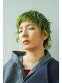 カットはベリーショートをベースにしたウルフスタイル。そこにクセのようなニュアンス感パーマをかけます。髪色は元々の根元は残しハイトーン部にライムグリーンをオンカラー[薬院/警固][ショートヘア][ハイトーンカラー][トリートメント][髪質改善][パーマ]