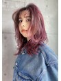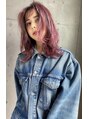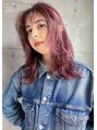 カットはセミロングレングスのレイヤースタイル。顔周りとミドルセクションからレイヤー入れてラフな動きを♪髪色はシャードールーツで根元はダークグレー、毛先はピンクバイオレットの2トーンカラー[薬院/警固][レイヤー][ハイトーンカラー][デザインカラー]