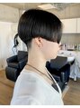 【気に入ったスタイルはブックマークをしていただくと便利です】カットはショートボブベースの刈り上げハンサムショート。骨格カバーしながら奥行きのあるデザインにカット。乾かしただけでキマるお手入れ簡単ヘア。[薬院/警固]