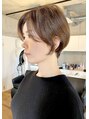 【気に入ったスタイルはブックマークをしていただくと便利です】カットは前下がりベースのカジュアルショートスタイル。前髪は長めに設定して大人っぽさを。乾かしただけでキマるお手入れ簡単ヘアです。[薬院/警固][ショート]