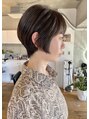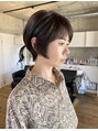 【気に入ったスタイルはブックマークをしていただくと便利です】カットは前下がりベースのショートスタイル。髪色は透明感のあるダークアッシュ。乾かしだけでキマるお手入れも簡単なスタイルです♪[薬院/警固]