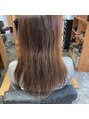 ハイライト履歴のある毛先の黄色味をしっかり抑える感じで8レベル程度のラベンダーグレージュで染めています。いつも寒色系で飽きてきたかたにおススメ。暖色すぎないけど艶のある透明感のあるカラーです。