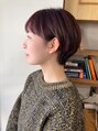 肌馴染みの良いウォーム系で優しい雰囲気なショートスタイル。根元は白髪も染まるようカラーしています。簡単なヘッドスパをカラー直後にやる事で地肌からケアしていきます。
