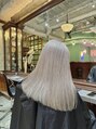 ブリーチリタッチメンテナンスとフルカラーです。リタッチは1ヶ月半~2ヶ月目安でメンテナンスしていただくと質感良くハイトーンを継続できます◎お色味も薄めのカラーをのせているので、毛先にはブリーチをつけずに根元のブリーチメンテナンスのみです。