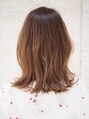 鎖骨ミディアムの長さにレイヤーを入れてふんわり動きがでるように☆ひし形を作ることで、より小顔の効果があります◎ウルフ程のレイヤーは入れないので初めてでもチャレンジしやすいです。カラーはハニーベージュのお色で柔らかい質感になるように☆