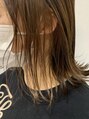 鎖骨ラインの切りっぱなしボブ外ハネにしてお顔まわりをちょろっと外巻きにするとニュアンスが出て◎チラッとイヤリングカラーを入れてお洒落に☆最初は少し馴染むくらいに入れて色落ちも楽しめます!これくらいなら会社にもバレにくいです◎