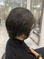 スッキリショートスタイル☆顔まわりを顎くらいの長さで切っているので、耳にかけても邪魔にならない長さにしてあります。手ぐしを通してふわっとなるように軽さを。朝、オイルなどのスタイリング剤をざっくり付けるだけで平気な楽チンスタイルです!