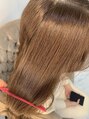 少し暖かみのあるマロンベージュ☆黄色くなりすぎるのが苦手な方はお勧めカラーです!艶感、モテヘアーがお好きな方もお勧めです◎トリートメントで髪の毛の中の水分量を整え、ぷるっとした質感へ。ご自宅でのヘアケアを少しでも楽にできるように☆