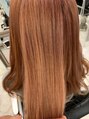 ピンクベージュに色落ちしたヘアカラー☆鎖骨下ラインの長さで毛先にぷるっと感が出るように。ブリーチ2回していても艶髪を維持できるようにしっかりとトリートメントでヘアケアをしていきます◎ご自宅でのお手入れが続けやすいように☆