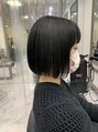 暗めのネイビーブルー☆黒だけど真っ黒じゃない、暗めカラーで艶感を◎元々ブリーチありのハイトーンの履歴を活かしたカラーリングです!顎ラインの前下がりボブでぷつっと可愛いスタイルに。頭が小さく見えてスタイルも良く見えます◎