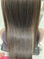 髪質改善トリートメント☆グレージュカラーで透明感を◎赤味オレンジ味を抑えた寒色系のお色味がお好きな方はとてもお勧めです!ロングヘアーを活かして、巻いてもストレートスタイルでもニュアンスが出るように。前髪長めのヘアスタイルも人気です☆