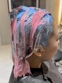 カラー残留を生かし残留しないピンクで補正したデザインカラー!水色はしっかりとしたブリーチ施術ができないと作り込まないです!#バレイヤージュ#デザインカラー#ダブルカラー#ハイトーン#ブリーチ