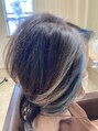 アシメウルフベースラインにグレージュ系カラーと アクセントにシルバーブルーで、優しさもクールさも両方際立つスタイル