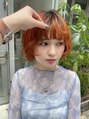 ぱつっと顎ラインのミニボブに顔まわりレイヤーをいれて、雰囲気出るようにしました!!カラーはブリーチ毛にオレンジカラーで夏っぽくイメチェン!!!