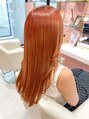 オレンジカラー/オレンジブラウン/ブリーチ1回カラー/ロングヘア