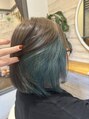 インナーを増やしてダブルブリーチでしっかり色を抜き、N.のペリドットをON!深みのあるグリーンが動くたびに映えて、さりげなくも存在感のあるインナーカラーに仕上がりました♪