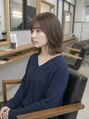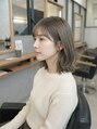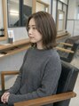 あご下ラインでまとまりを出したナチュラルボブ。毛先は軽く外に逃がし、丸くなりすぎない抜け感をプラスしています。前髪は薄めに設定し、目元が重く見えないよう調整。全体にレイヤーを入れすぎず、ツヤと柔らかさを活かしたシルエット。