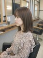 肩に触れる長さのボブをベースに、毛先は自然に外へ流れるよう調整。表面はまとまりを重視し、広がりを抑えつつ程よい動きを出しています。前髪は薄めに流して大人っぽさを演出。シンプルながら洗練された、落ち着きのあるナチュラルスタイルです。