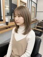 あご下ラインのボブをベースに、毛先へ自然な動きをつけたナチュラルスタイル。表面は重さを残しつつ、顔まわりと毛先だけ軽さをプラスしています。薄めの前髪でやわらかさを出し、ラフすぎず程よくこなれた印象に仕上げました。
